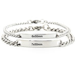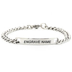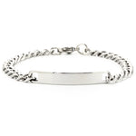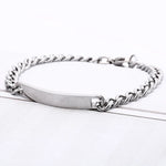 Su diseño combina una cadena metálica robusta con una placa central lisa , perfecta para grabar un nombre, una palabra especial o una fecha importante. El resultado es una pulsera elegante, discreta y fácil de llevar a diario.