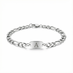 Su diseño combina una cadena metálica robusta con una placa central grabada con la inicial que elijas, creando una pieza minimalista, elegante y fácil de llevar a diario. Es el equilibrio perfecto entre estilo moderno y significado personal.